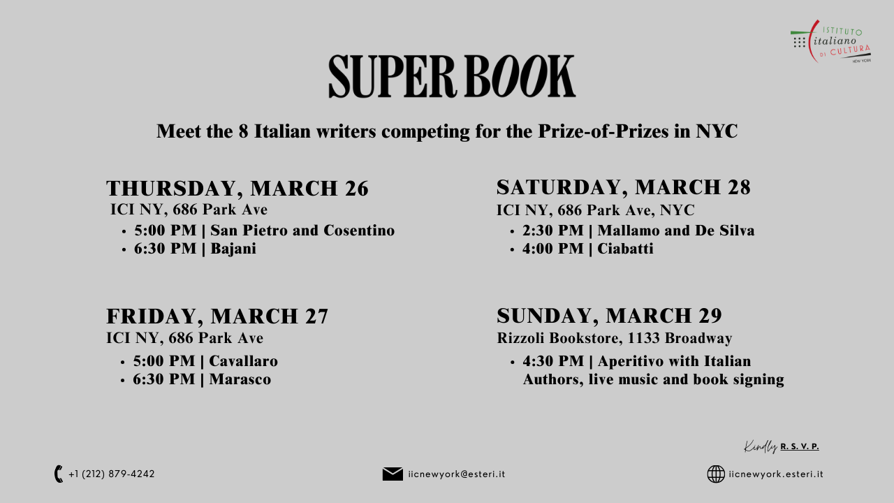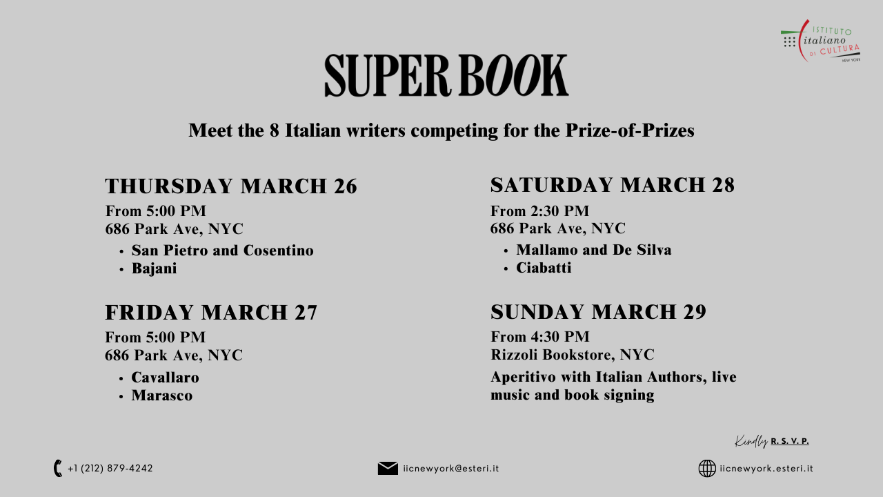 📚 SuperBook: Italy’s Award-Winning Authors Compete in New York Conceived by the Italian Cultural Institute of New York, under the...