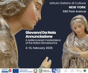 Giovanni da Nola’s Annunciation: A Rediscovered Renaissance Masterpiece in New York New York, NY — From February 4 to February 14, 2026, the Italian Cultural Institute in New York will present Giovanni da Nola, Annunciation. A Rediscovered Masterpiece of the Italian Renaissance, an international cultural project celebrating the restoration and contemporary reinterpretation of an extraordinary sixteenth-century […]
