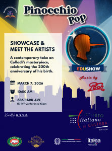 We are delighted to launch Pinocchio Pop, the newest creation by Simona Rodano (The Italian Fairy), from the Italian Cultural Institute of New York. Children of all ages and their families are invited to this special showcase—an opportunity to meet the artists and discover a fresh, contemporary take on Collodi’s masterpiece, in the year of […]