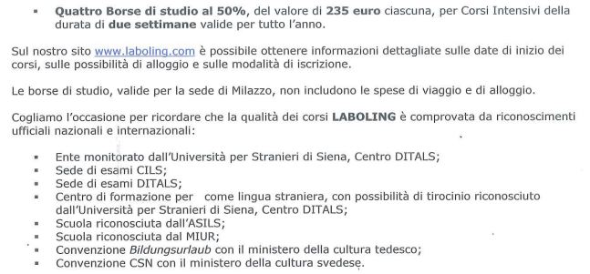 LABOLING Milazzo (ME) – Sicilia | Scholarships